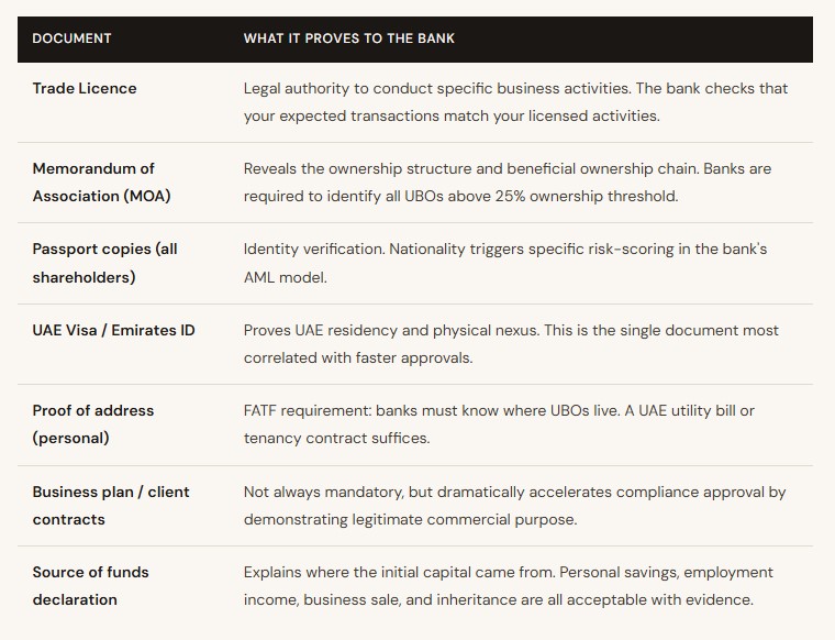 Banks do not ask for documents arbitrarily. Every document in the list below corresponds to a specific KYC requirement. Understanding the logic helps you prepare more convincing submissions.